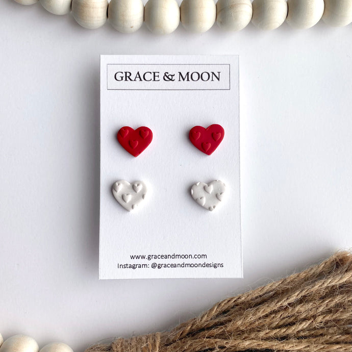 Heart Studs (red and white)